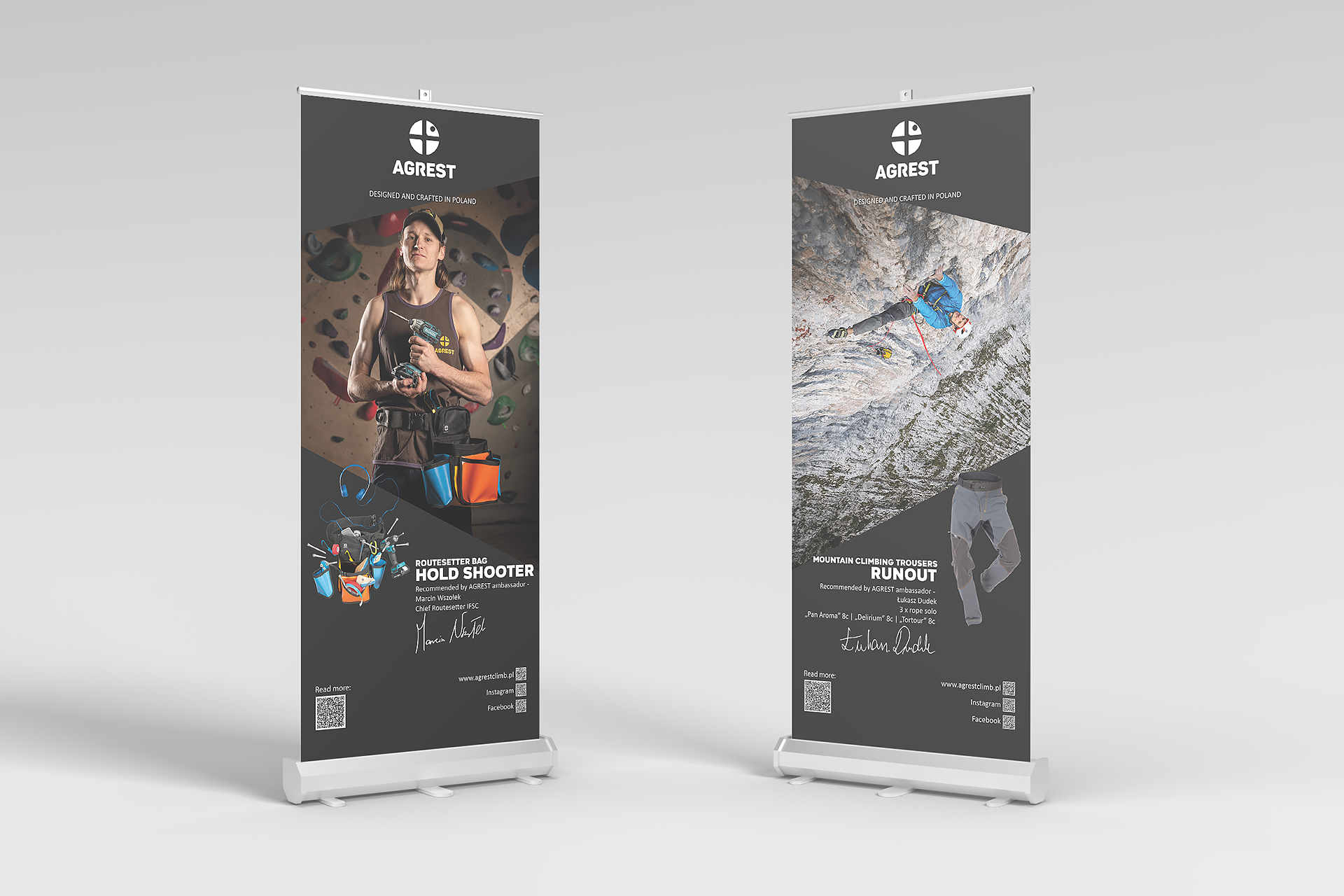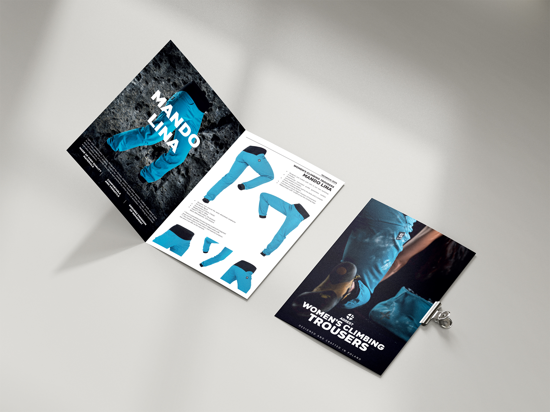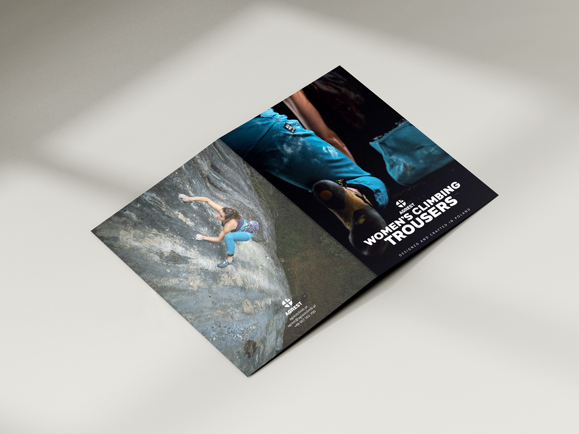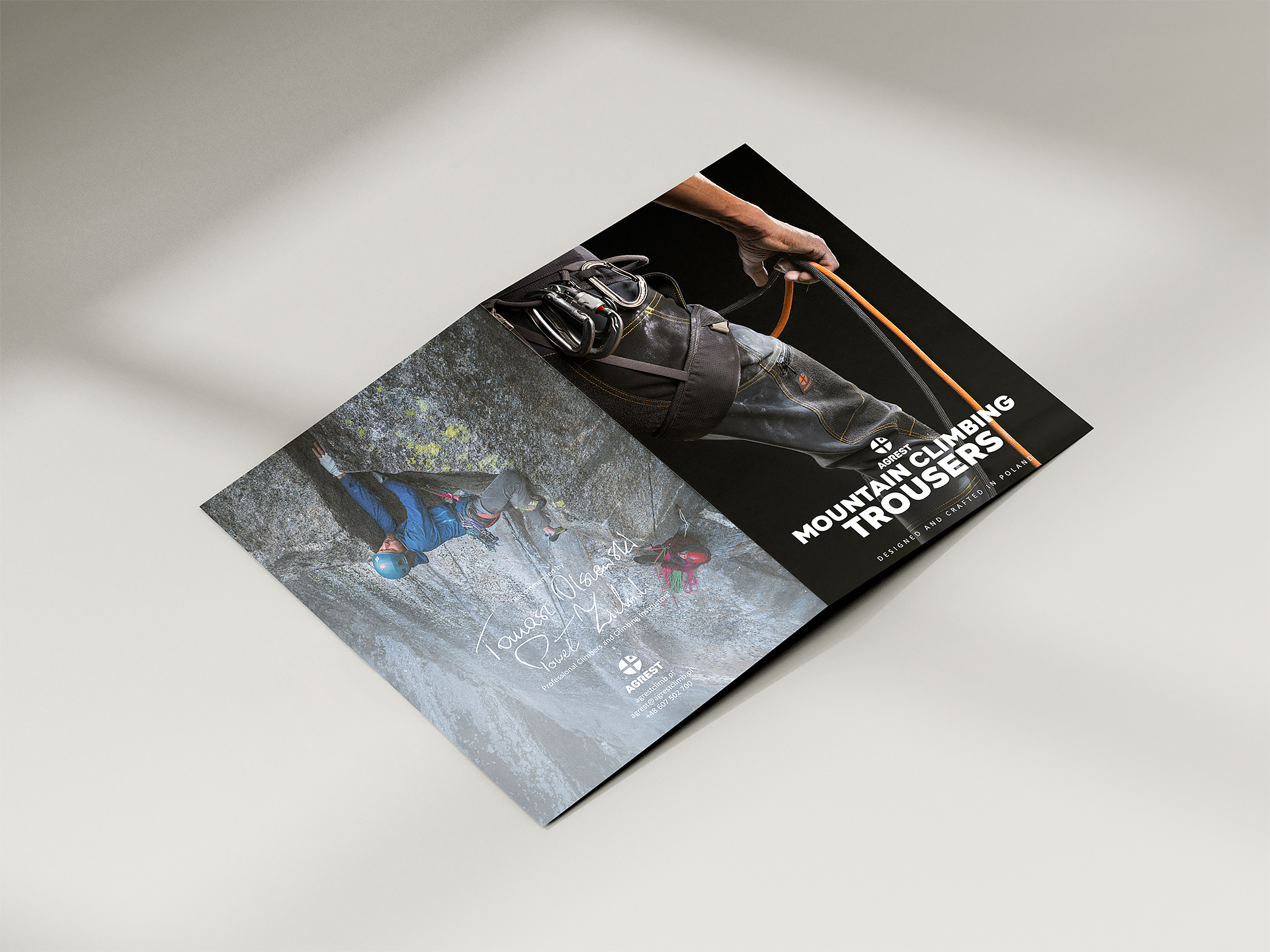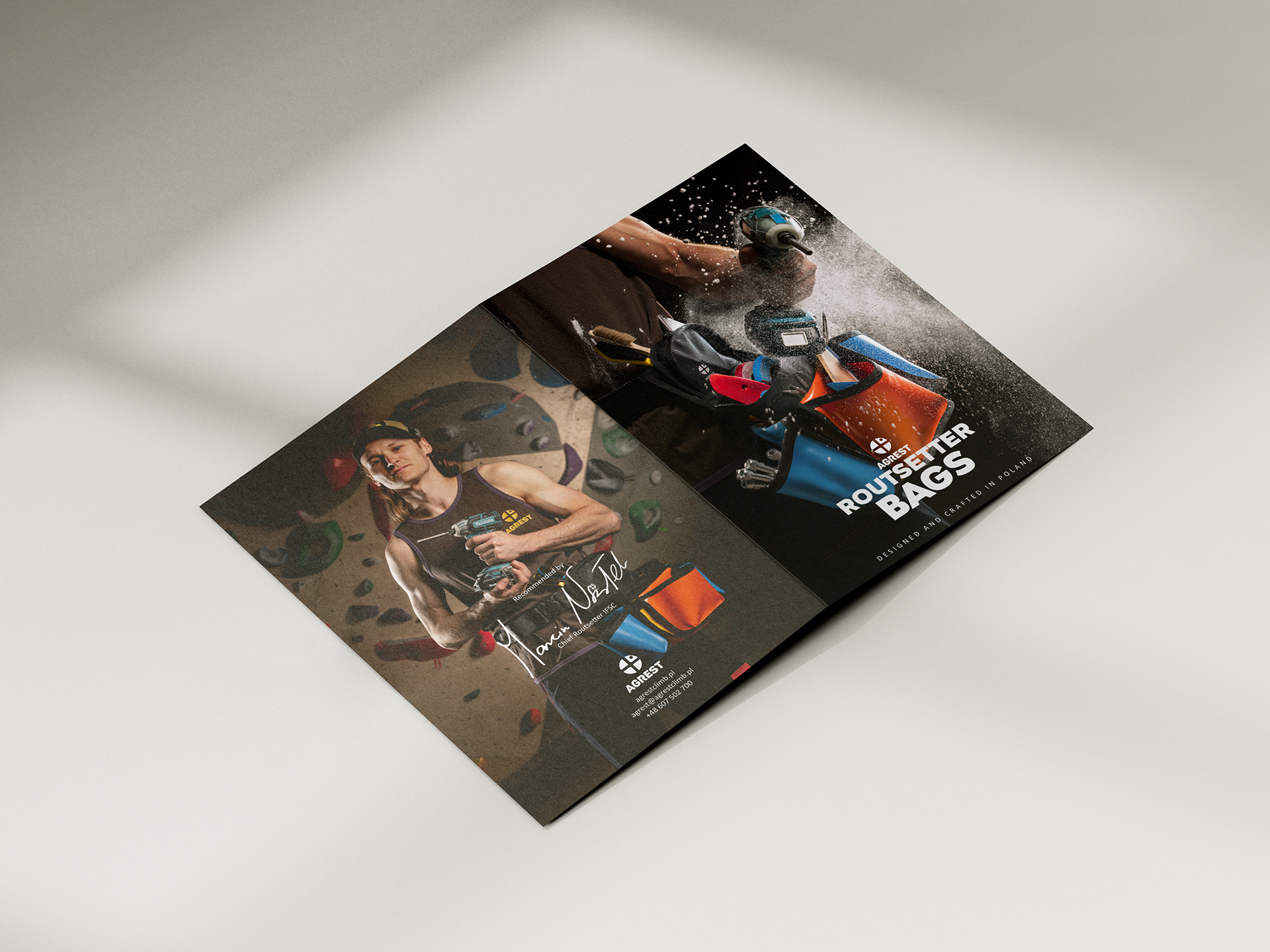 Połączenie moich umiejętności w fotografii sportowej, produktowej i reklamowej pozwala mi realizować kompleksowe projekty, takie jak broszury reklamowe dla krakowskiej manufaktury Agrest, produkującej odzież i akcesoria dla wspinaczy. Cała realizacja obejmowała aranżowane sesje studyjne ukazujące produkty w akcji, oraz fotografie typu “packshot” i “ghost” oraz sesje plenerowe. Co więcej wykorzystałem także moje umiejętności projektowania graficznego do stworzenia layoutu broszury oraz roll-upów, oraz kompleksowego przygotowania materiałów do druku.