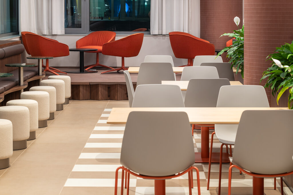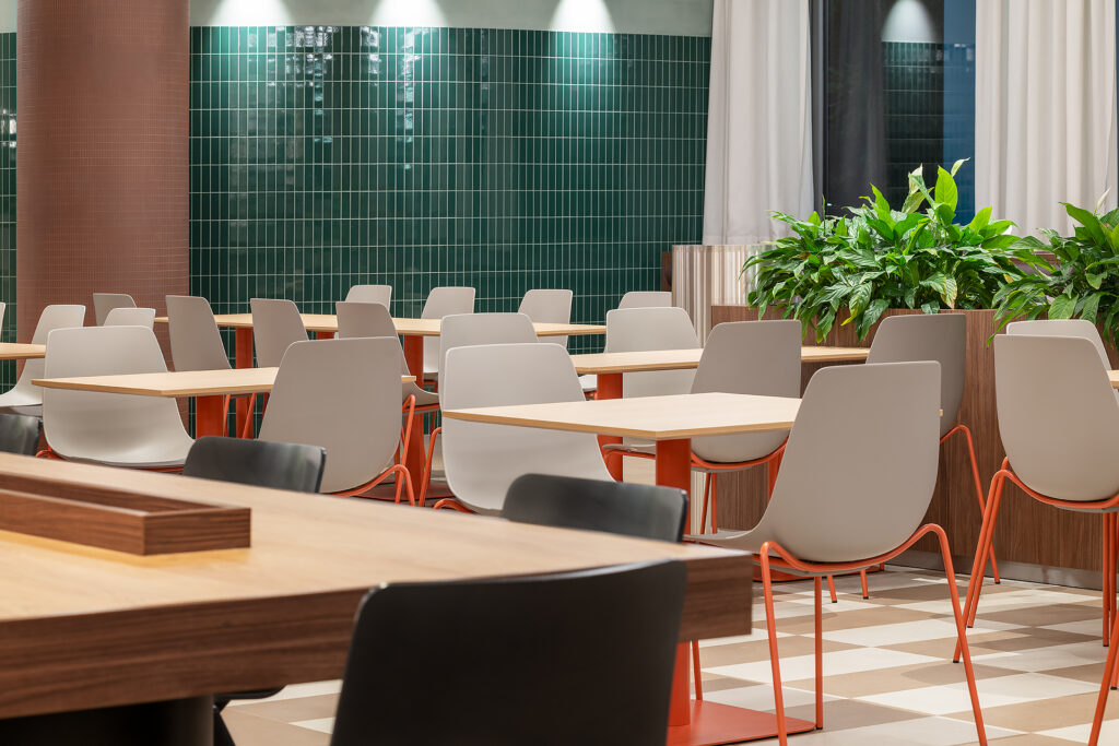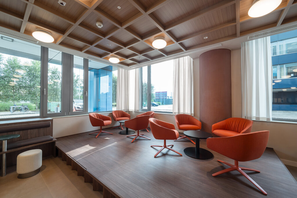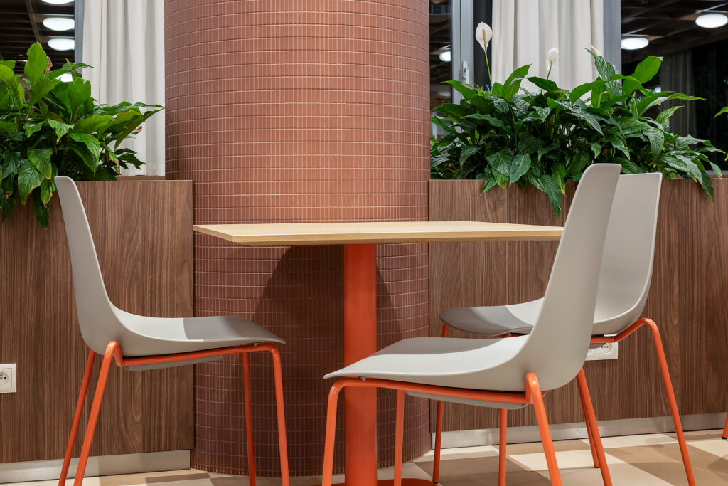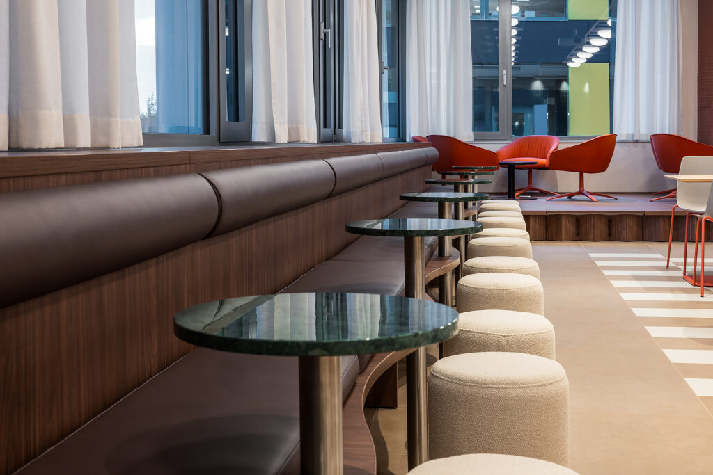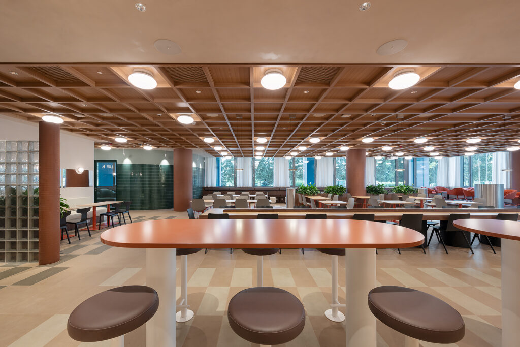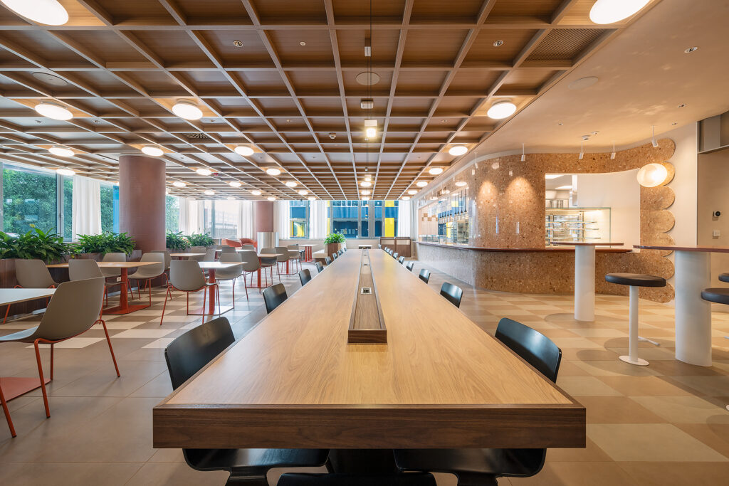 Sesja prezentująca bar i pomieszczenie relaksacyjne dla pracowników, projekt zrealizowany przez firmę Electrotechnics Control.