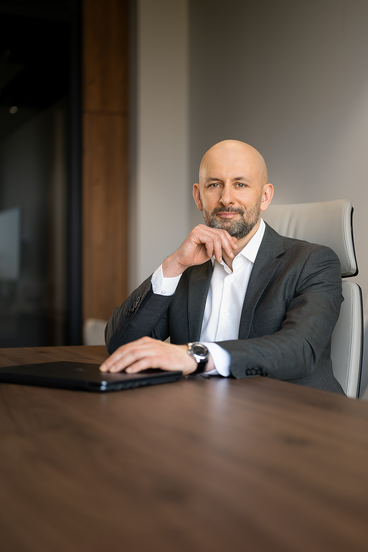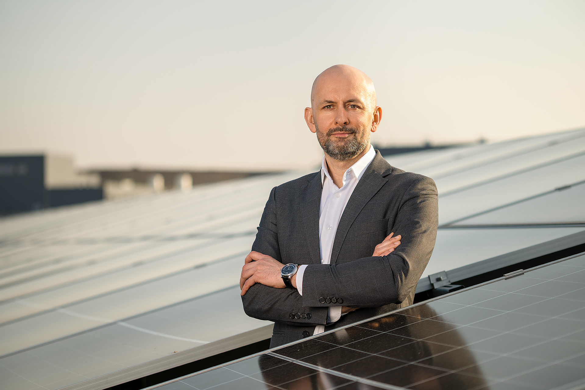 Maciej jest prezesem firmy Elemental Battery Metals. Sesję portretową zrealizowaliśmy w przestrzeni biurowej oraz na farmie fotowoltanicznej należącej do kompleksu zakładów Elemental. Oprócz portretów typowo biznesowych pozwoliliśmy sobie na wykonanie kilku zdjęć w nieco luźniejszej formie.